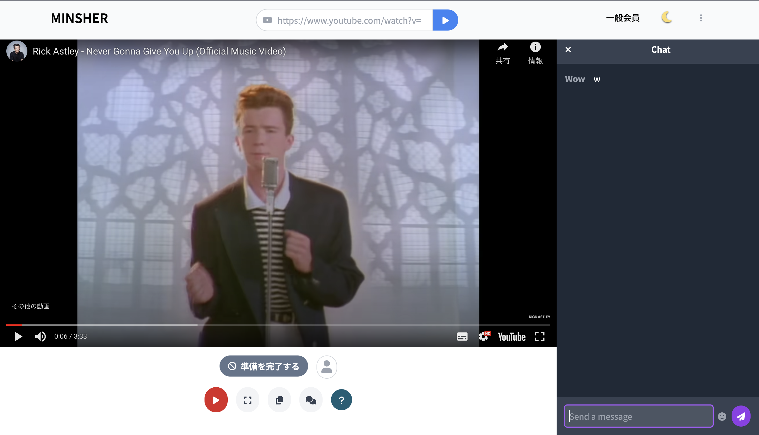YouTubeの動画を複数人で同時に視聴してリアルタイムでコメントを共有できるサービスです。