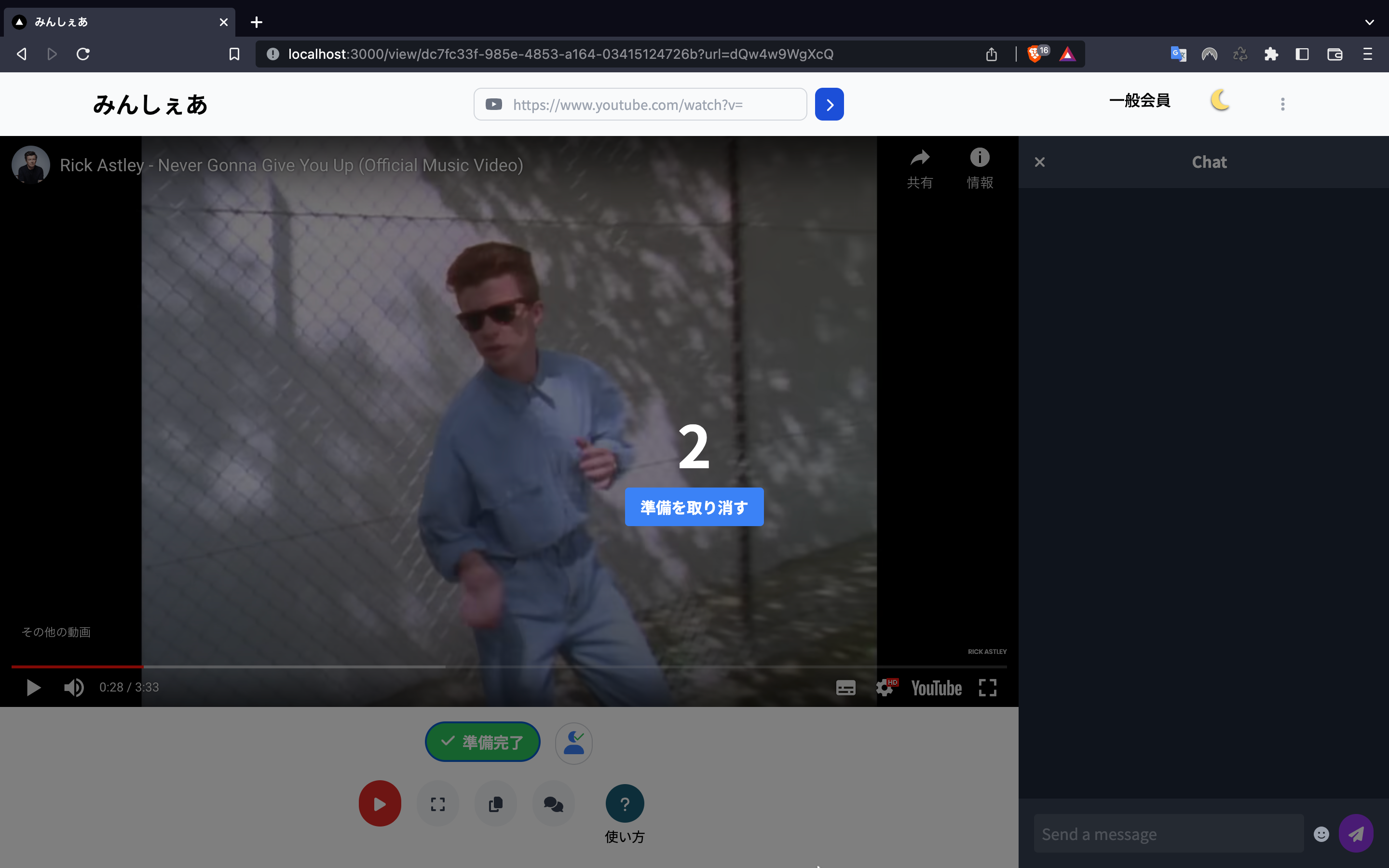 あ、URLをシェアした人が入ってきました!どうやら準備を完了させていますね。自分も動画を見る準備ができたら「準備完了」を押しましょう!